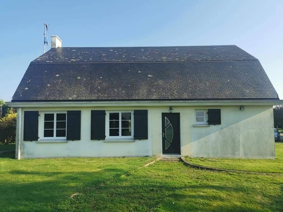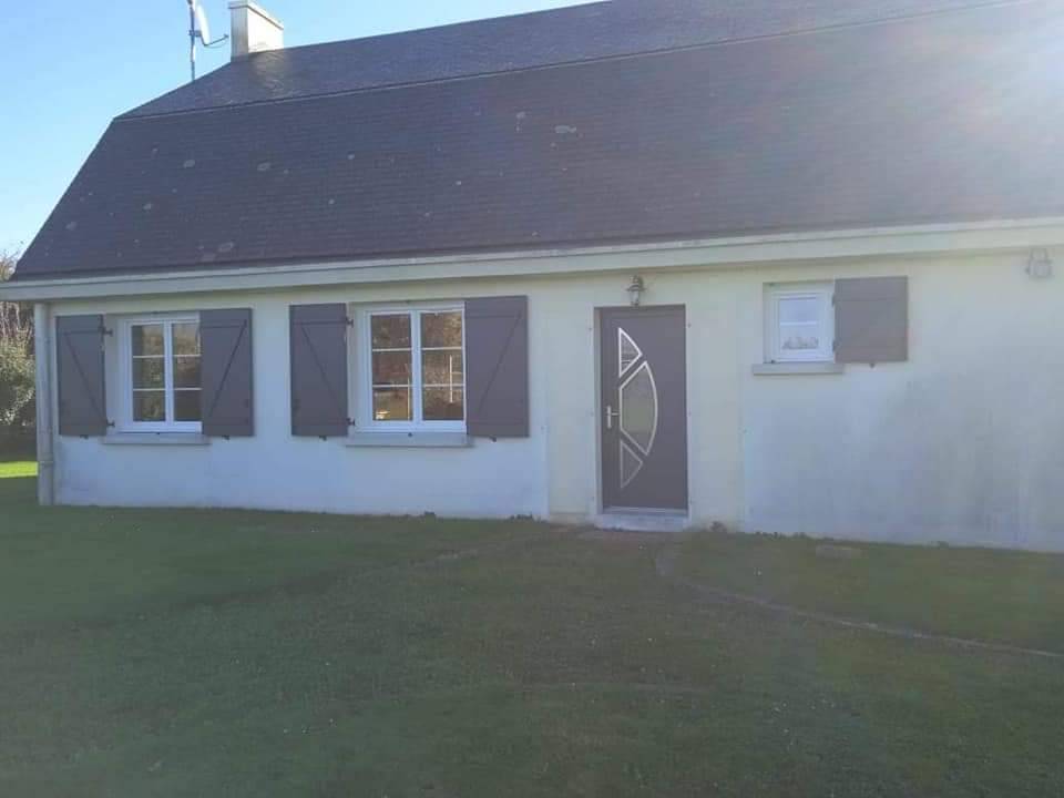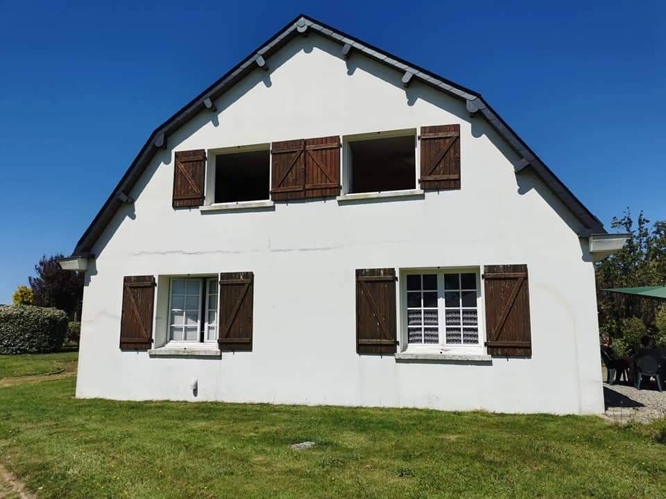 Sur ces photos, vous pouvez voir que nos clients de Paluel ont fait le choix de 15 fenêtres en PVC blanc avec dépose de la pièce d’appui basse, car trop abîmée sur certaines menuiseries. Ils ont également décidé de remplacer leurs anciens volets battants par des 12 volets en aluminium de la marque française Thiebaut dont nous sommes partenaires depuis des années. Ces nouveaux volets battants sont isolés avec mousse intégrée. Ils sont de couleur gris anthracite (7016) et donc assortis à la porte d’entrée en aluminium fabriquée dans notre usine qui est de la même teinte.